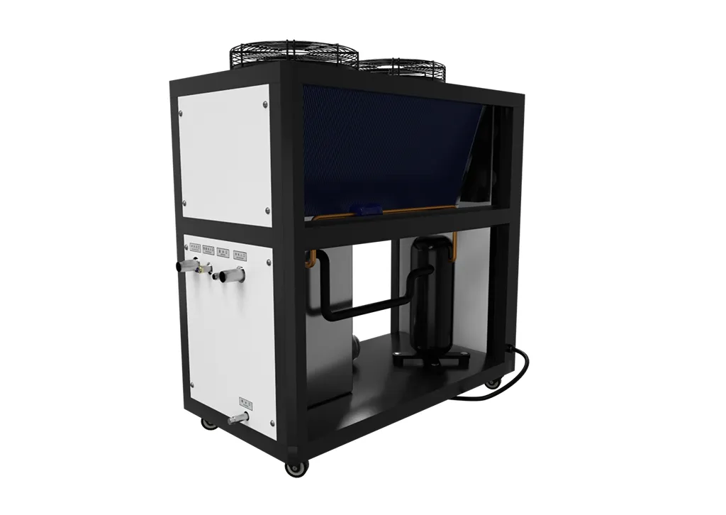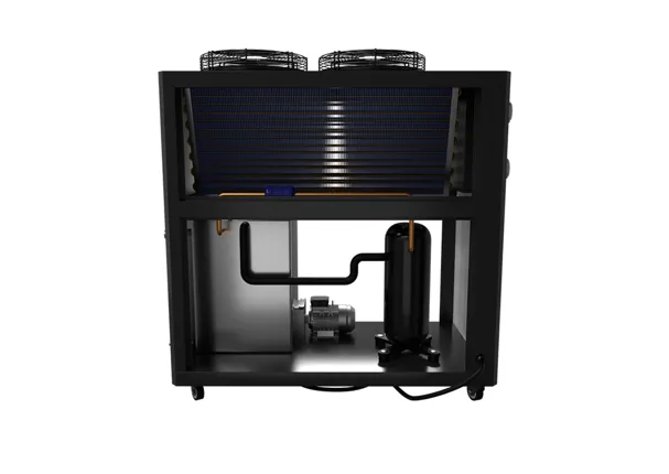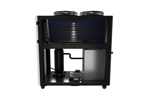 Модульный чиллер с воздушным охлаждением конденсатора. Выдает хладопроизводительность 10 кВт, 12 кВт, 14 кВт, 15 кВт в час