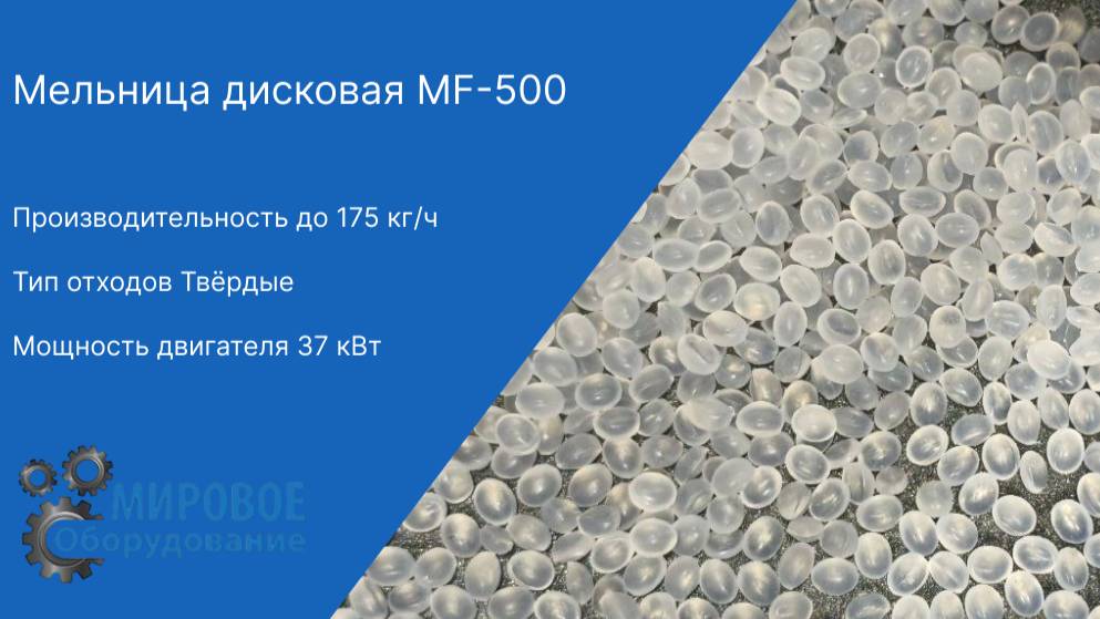 Дисковый измельчитель для полимеров. Основной двигатель 37 кВт, вентилятор 4 кВт., вибросито 0,75 кВт..