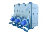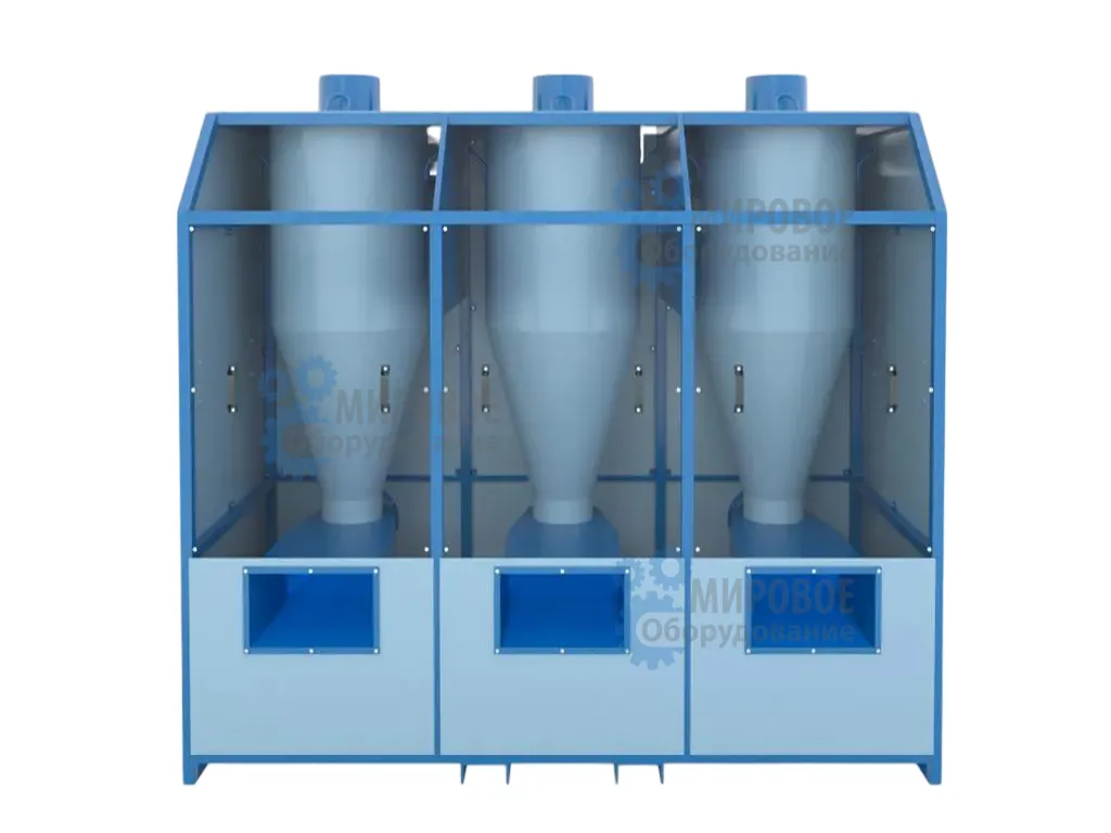 Каскад циклонов– это оборудование, предназначенное для сушки полимерного сырья после этапа мойки. Состоит из перфорированных циклонов, объединенных в едином корпусе.