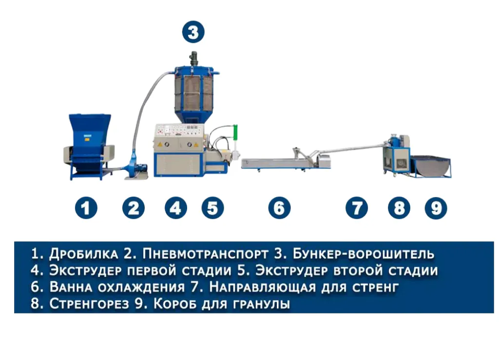 Тип подачи в экструдер | Бункер-накопитель с ворошителем |