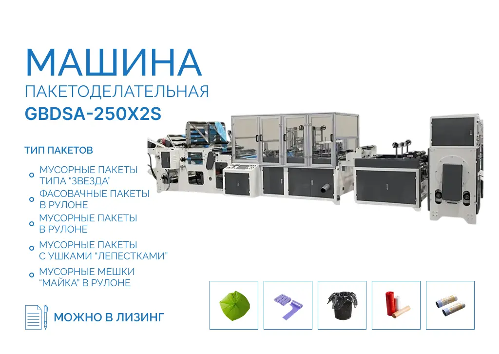 | Производительность | Плоский пакет: 100–200 шт./мин × 2 Мешок с вырубной ручкой и S-пакет: 80–140 шт./мин × 2 |