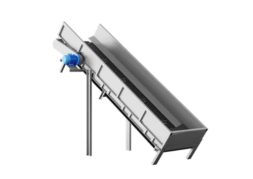 ⚡ Транспортер с желобами полезен при сортировке отходов и их перемещении в цех переработки.