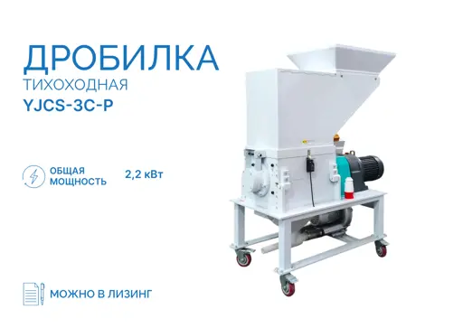 Оборудование предназначено для измельчения исходного сырья в дробленку или более мелкую крошку. Имеется несколько видов измельчителей, один из них шредер. Применяется на начальном этапе к твердым, габаритным пластикам с которыми не способно справиться другое оборудование. Такое преимущество обеспечивается за счет низкой скорости вращения массивных валов и выступающих ножей исполненных в виде зубцов.