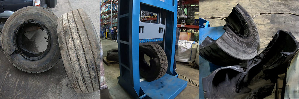 Резка армированной шины с металлокордом на ГГР-1000. Видео запуска