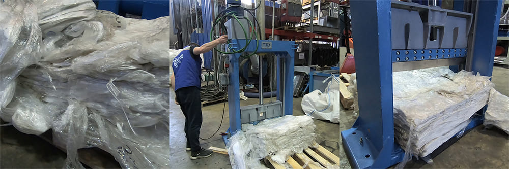Наиболее удобно применять гильотинные резаки по отношению к плотно сформированным тюкам. При этом будет наблюдаться наибольшая эффективность. В том числе с помощью гильотины для резки плёнки можно перерабатывать нетканые материалы и бигбэги.